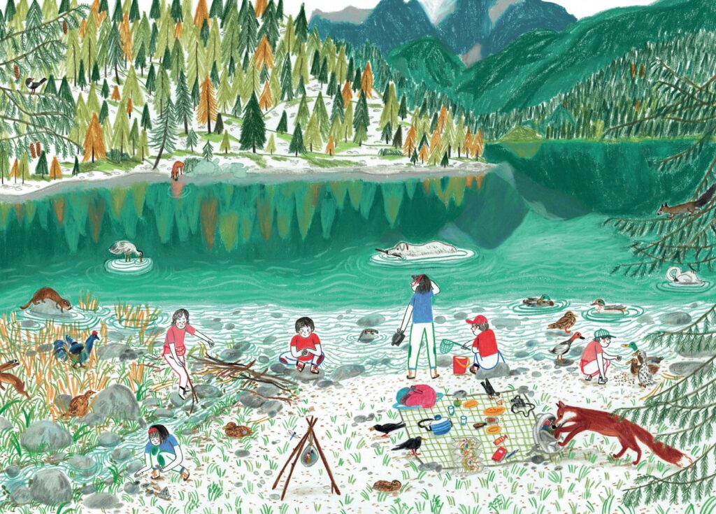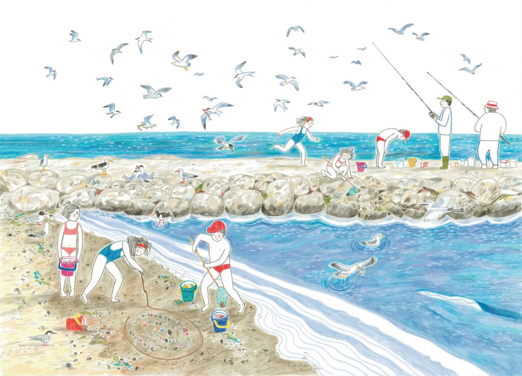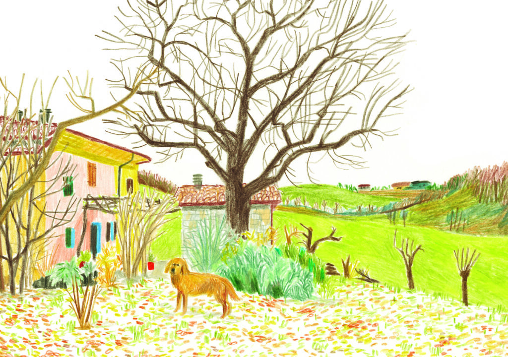 Lavora con matite colorate e acquerelli e le sue immagini sono ispirate a ricordi d’infanzia e alla natura che la circonda.