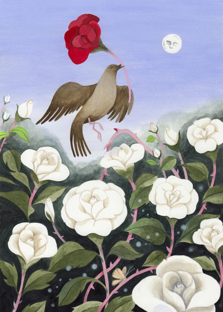 Come medium espressivo predilige acquerelli o gouache, al momento lavora a Bologna in uno studio condiviso con altri illustratori.
